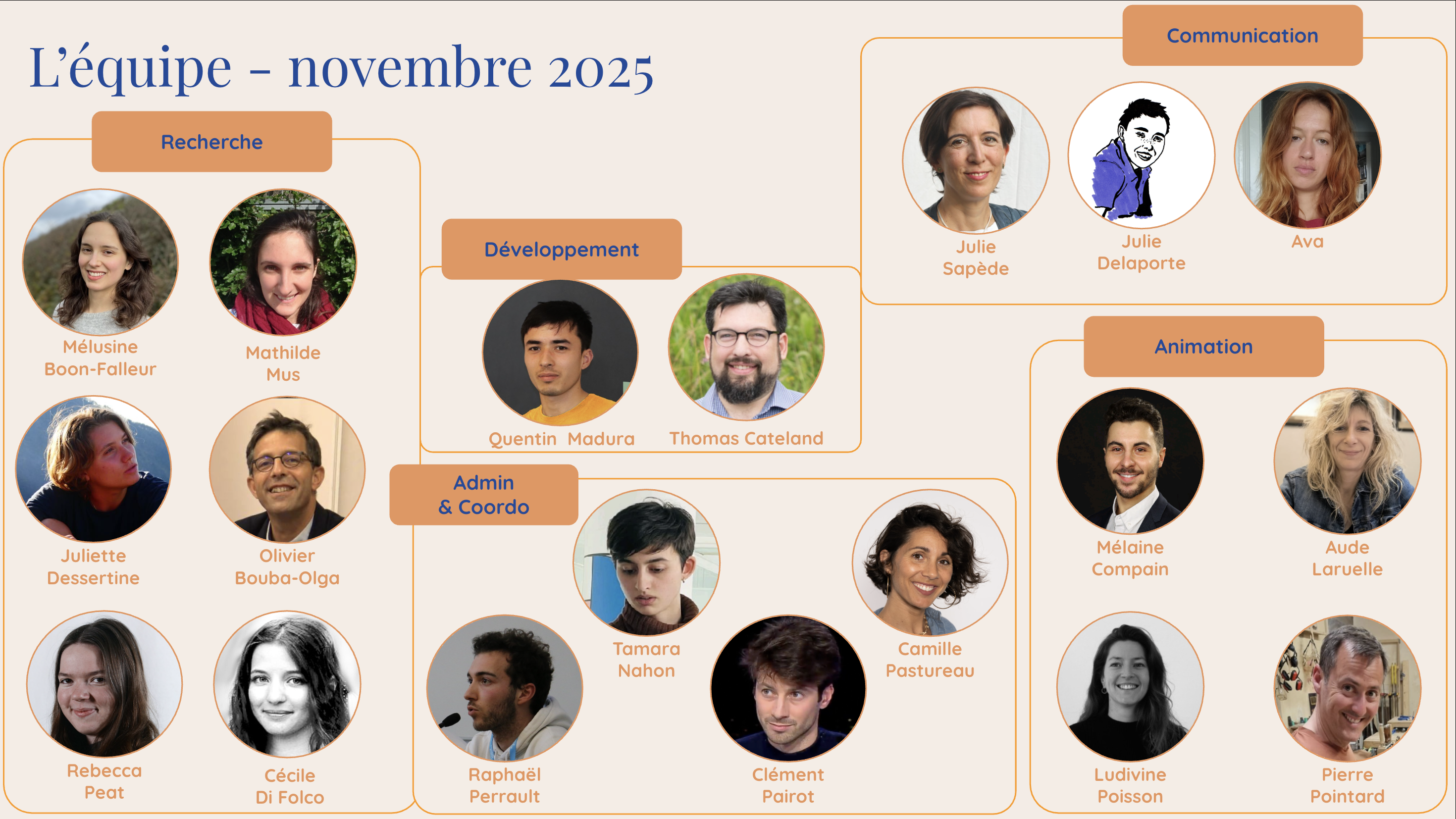 Le reste de l'équipe est intégralement bénévole. Notre équipe d'animateurs et d'animatrices grandit tous les jours, cette page sera bientôt mise à jour.
